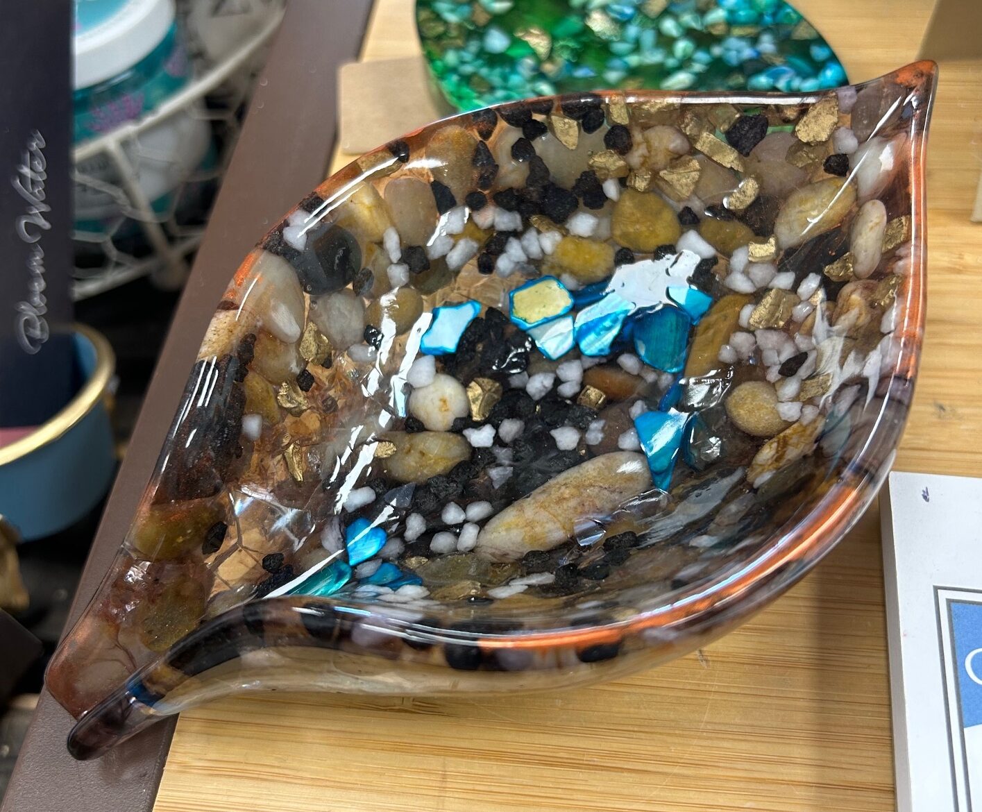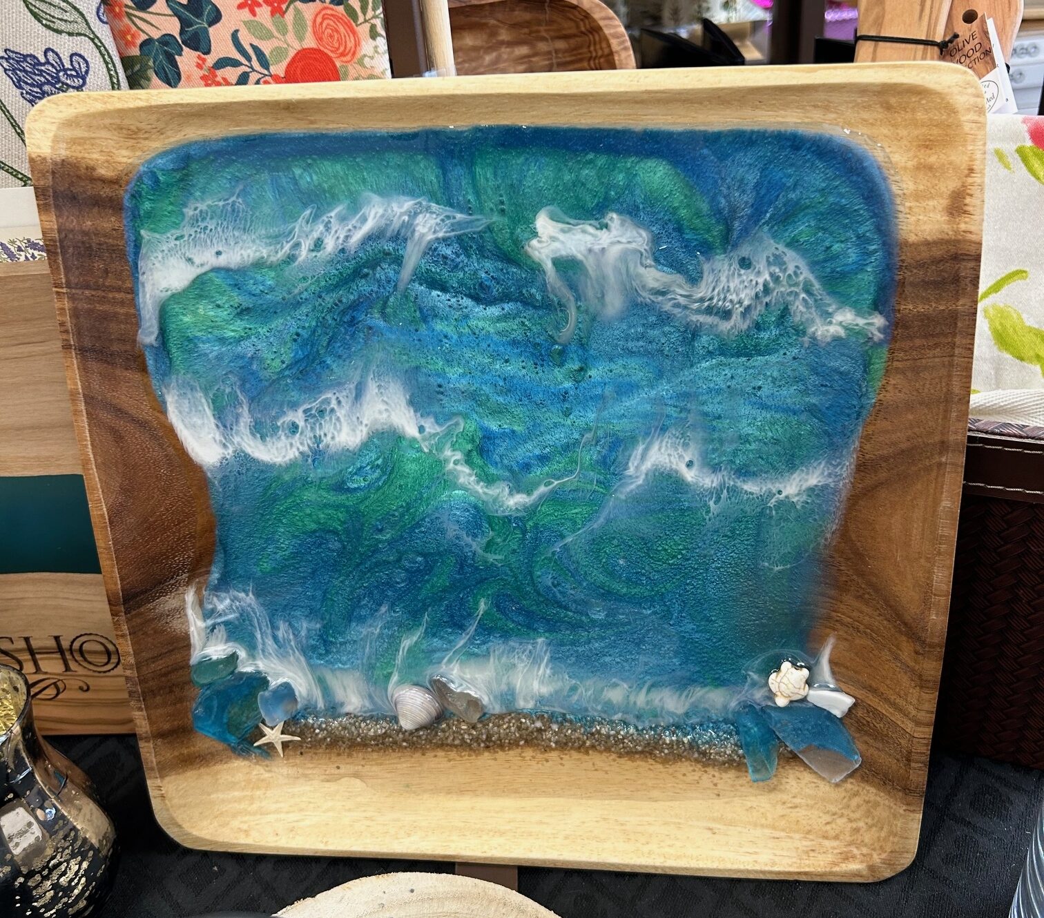 Michigan-born artist, Christina Biggert, traveled the world until settling in the Dallas area five years ago. Although her current passion is working with epoxy, she also uses a variety of media, such as wood and other natural materials to create one-of-a-kind works of art. Christina’s pieces bring beauty and functionality to everyday household spaces.